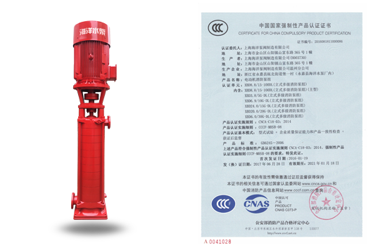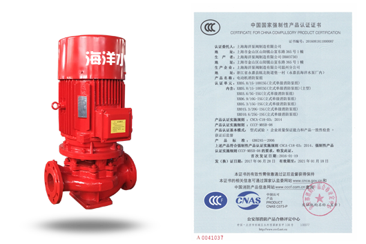 描述: 立式單級消防泵組XBD-HY-CCC國家CCCF認證