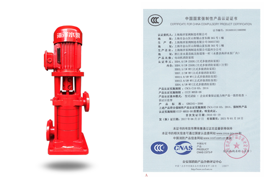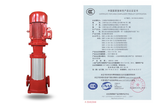 描述: 立式多級消防泵組XBD-WY-CCC國家CCCF認證