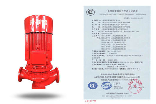 描述: 立式單級消防泵組XBD-ISG-CCC國家CCCF認證