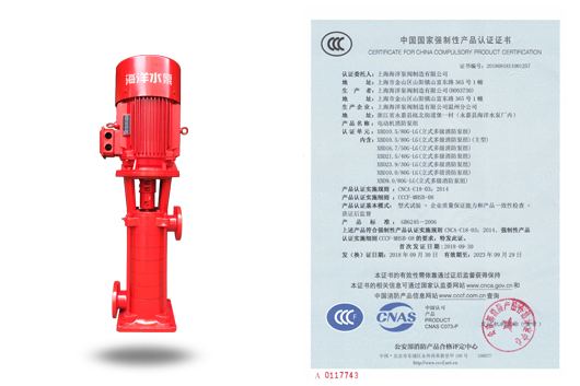 描述: 立式多級消防泵組XBD-LG-CCC國家CCCF認證