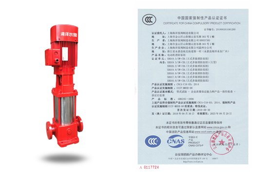 描述: 立式多級消防泵組XBD-GDL-CCC-國家CCCF認證