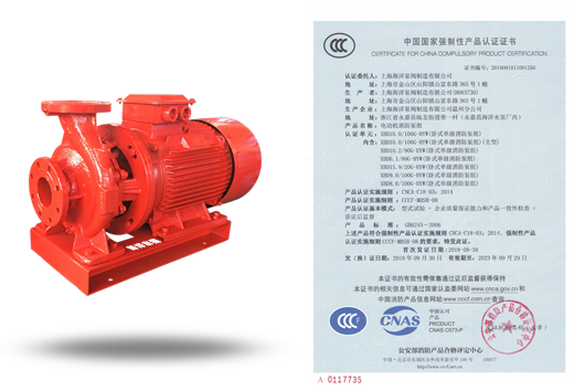 描述: 立式單級消防泵組XBD-ISG-CCC國家CCCF認證