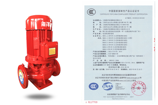 描述: 立式單級消防泵組XBD-HY-CCC國家CCCF認證